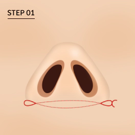 the alar is wide, tie a special thread between both nostrils and bring the tip of